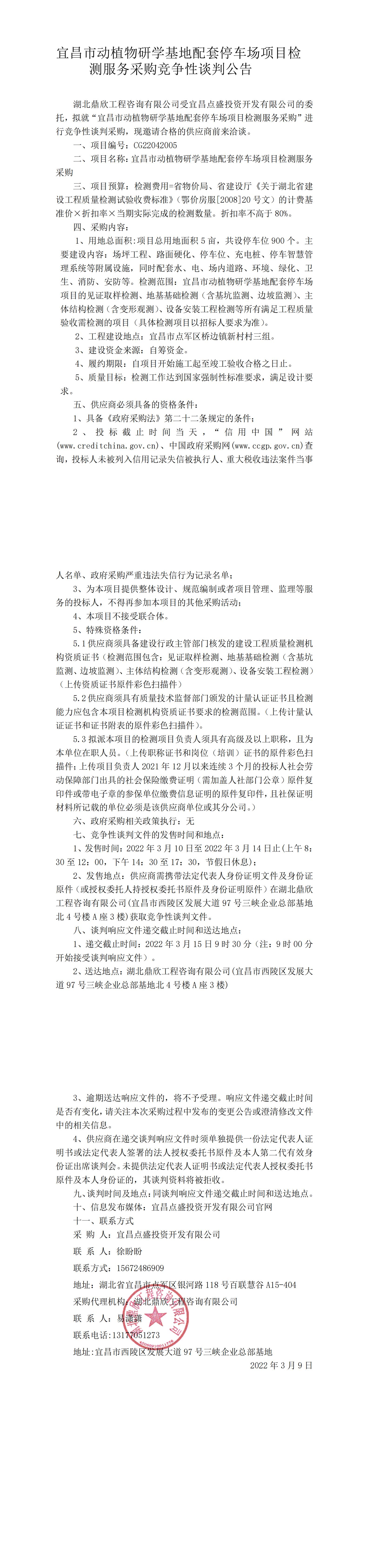 宜昌市動(dòng)植物研學(xué)基地配套停車場(chǎng)項(xiàng)目檢測(cè)服務(wù)采購競(jìng)爭(zhēng)性談判公告