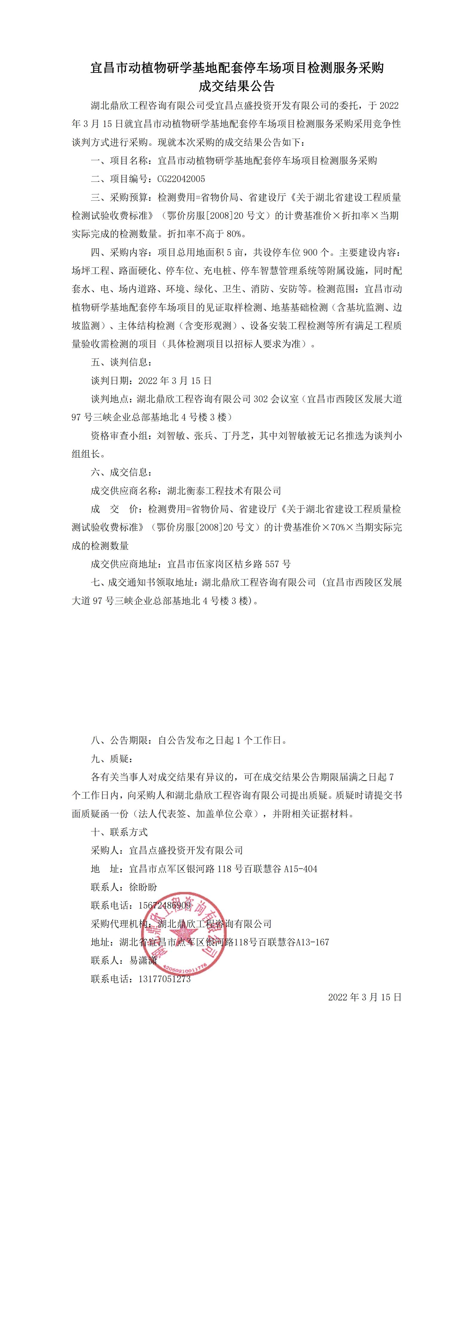 宜昌市動(dòng)植物研學(xué)基地配套停車場(chǎng)檢測(cè)服務(wù)采購(gòu)成交結(jié)果公告