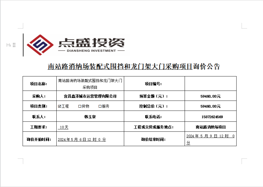 南站路消納場(chǎng)裝配式圍擋和龍門(mén)架大門(mén)采購(gòu)項(xiàng)目詢價(jià)公告