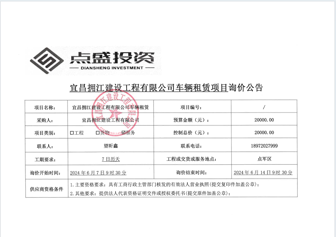 宜昌擁江建設(shè)工程有限公司車(chē)輛租賃項(xiàng)目詢(xún)價(jià)公告