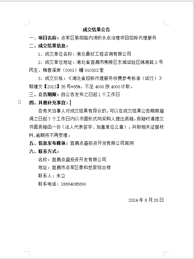 點(diǎn)軍區(qū)紫陽路內(nèi)澇積水點(diǎn)治理項(xiàng)目招標(biāo)代理服務(wù)成交公告