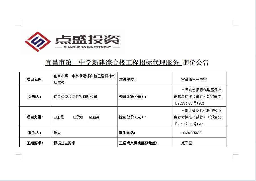 宜昌市第一中學(xué)新建綜合樓工程招標(biāo)代理服務(wù)詢價(jià)公告