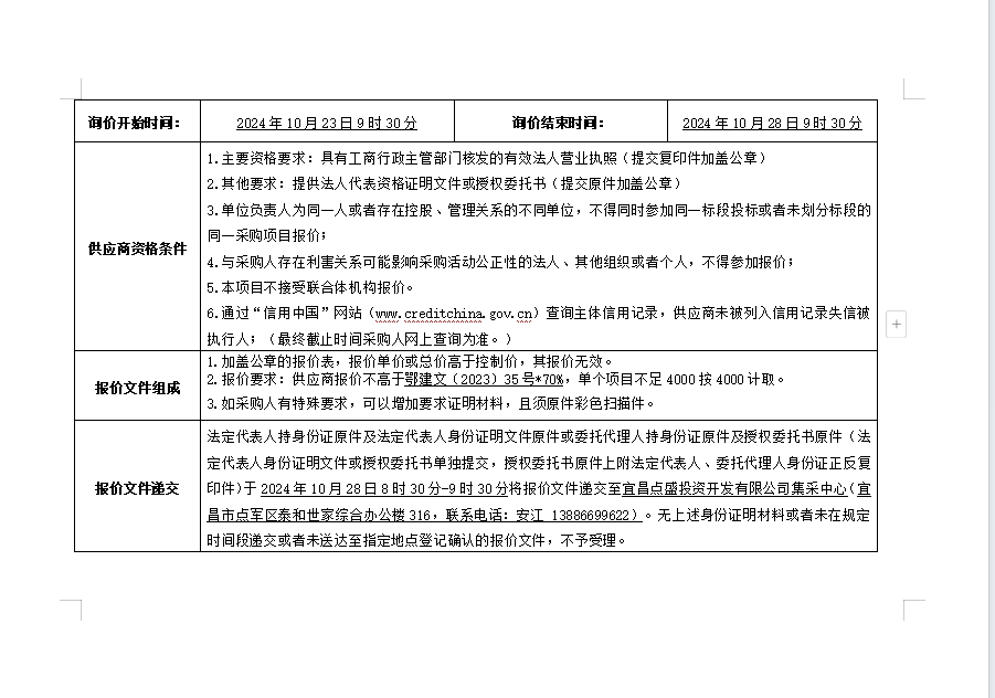 詢價(jià)公告