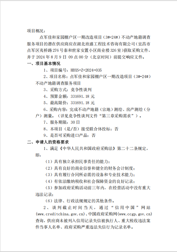 點軍佳和家園棚戶區(qū)一期改造項目(3#-24#)不動產(chǎn)地籍調查服務項目談判公告